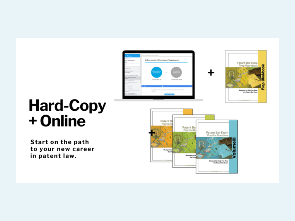 The final benefit is that we can update the online course immediately. If the Patent Bar is updated after you purchase the hard-copy course, we will not be able to ship out new materials to you. You will need to get the updates from within the online course (which you will have access to).
